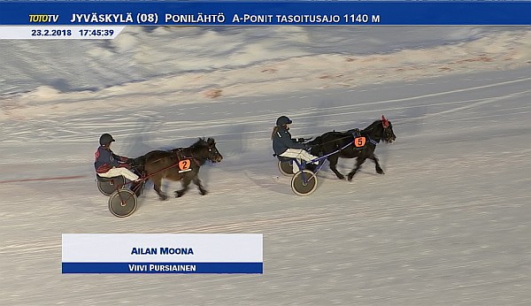 Ponilähdön voittaja nro 5 Ailan Moona ja Viivi Pursiainen, ja kakkonen nro 2 Kaitalan Taika ja Hanna Hellevuo.