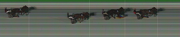 KARMAN JAROMIR: Lähti 60 metrin pakilta, eteni kierros jäljellä pääryhmään 3. sisälle. Laukkasi maalisuoran alkaessa leveän rintaman takaa jääden taustalle. Peri kuitenkin kolmannen sijan kun lähdön kaikki muut hevoset tuli hylätyksi laukkojen vuoksi.