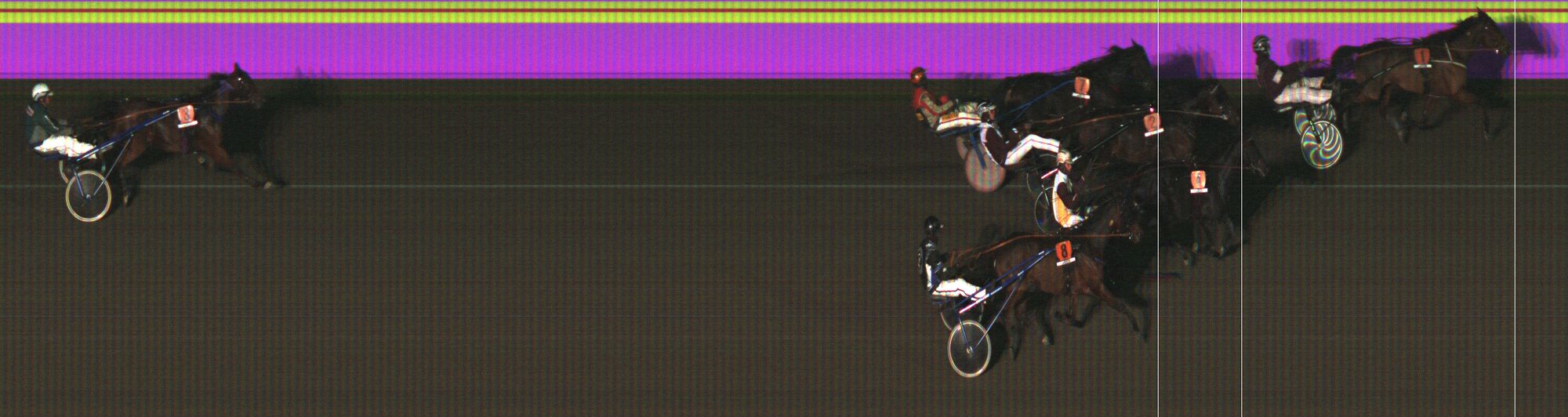 NEVAN TUISKU: Laukkasi 1. takasuoralla 4. sisältä, laukkasi 1350 jäljellä keskipareissa uudelleen. Kohosi viim. takasuoralla 5. sisältä toisen radan jonoon. Tuli porukan keskeltä rehdisti neljänneksi.