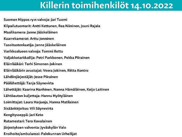 Menossa mukana: K-S Hevosenomistajat, Hevosklinikka Laukaa, O.K. Auto, Finntack, RTV, Keski-Suomen Yrittäjät, LähiTapiola, 360 Palvelut, Hankkija.