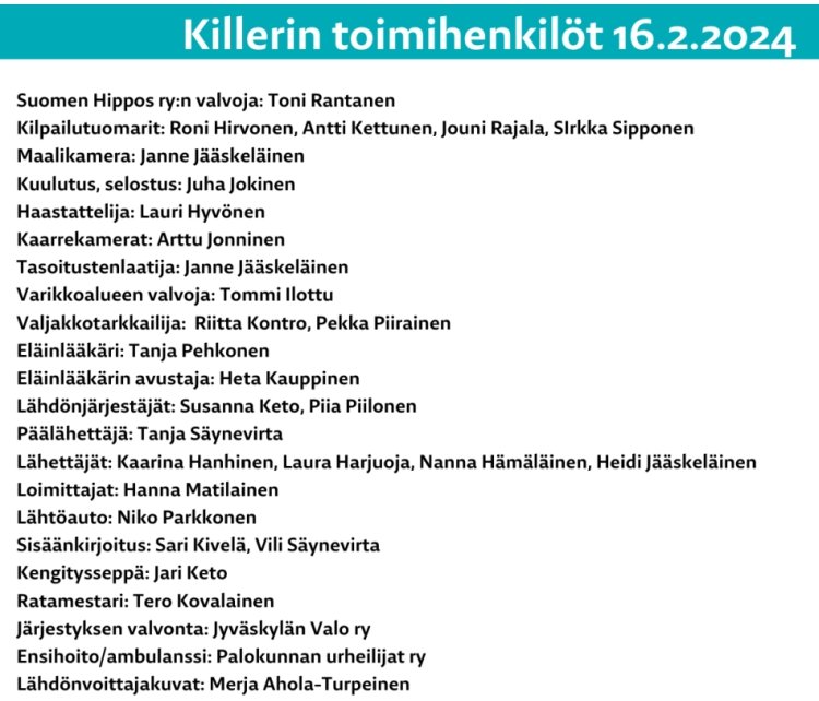 Koelähtö klo 17:20, Ponilähtö klo 17:40