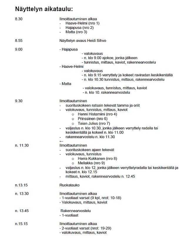 Lauantain 10.5. ravit ovat totutusta poikkeavat...