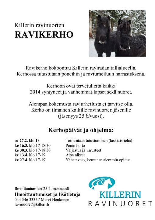 K-S:n hevosjalostusliitto, Vesangantie 24, 40630 Jyväskylä tai hevosjalostusliitto(a)killeri.fi