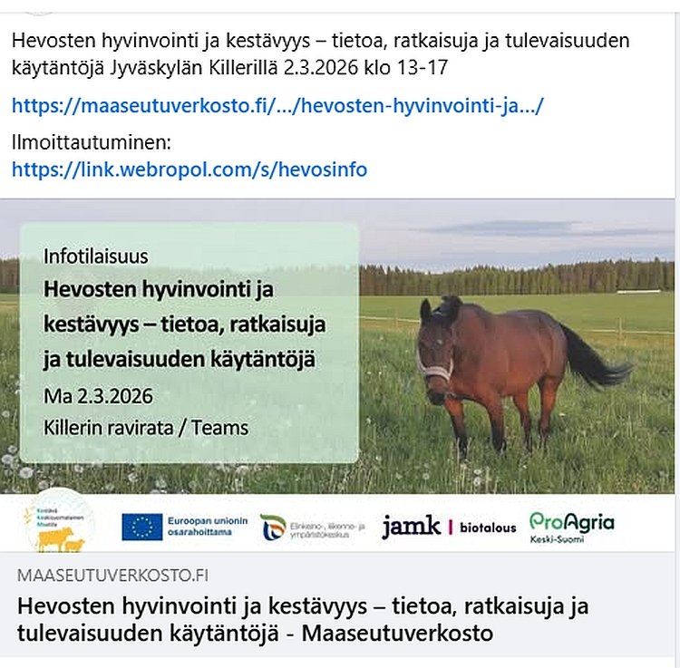 Hevosten hyvinvointi ja kestävyys...