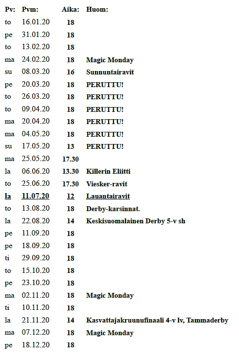 Jyväskylän totoravipäivät v. 2020